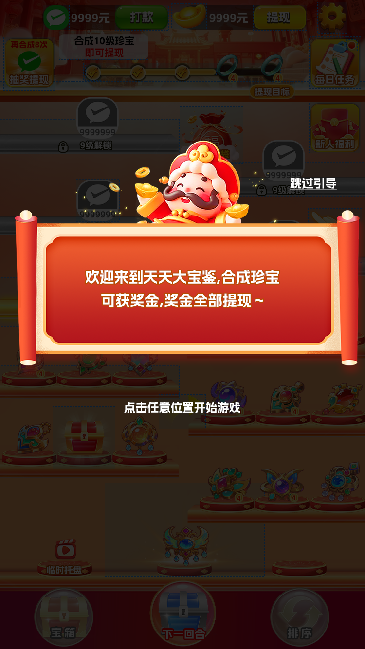 天天大宝鉴,是一款围绕卡通元素打造的休闲游戏,游戏简单好玩,画面精美新颖,游戏内提供多种场景模式,可手动可挂机。各位小伙伴们,欢迎加入!
